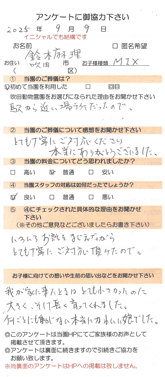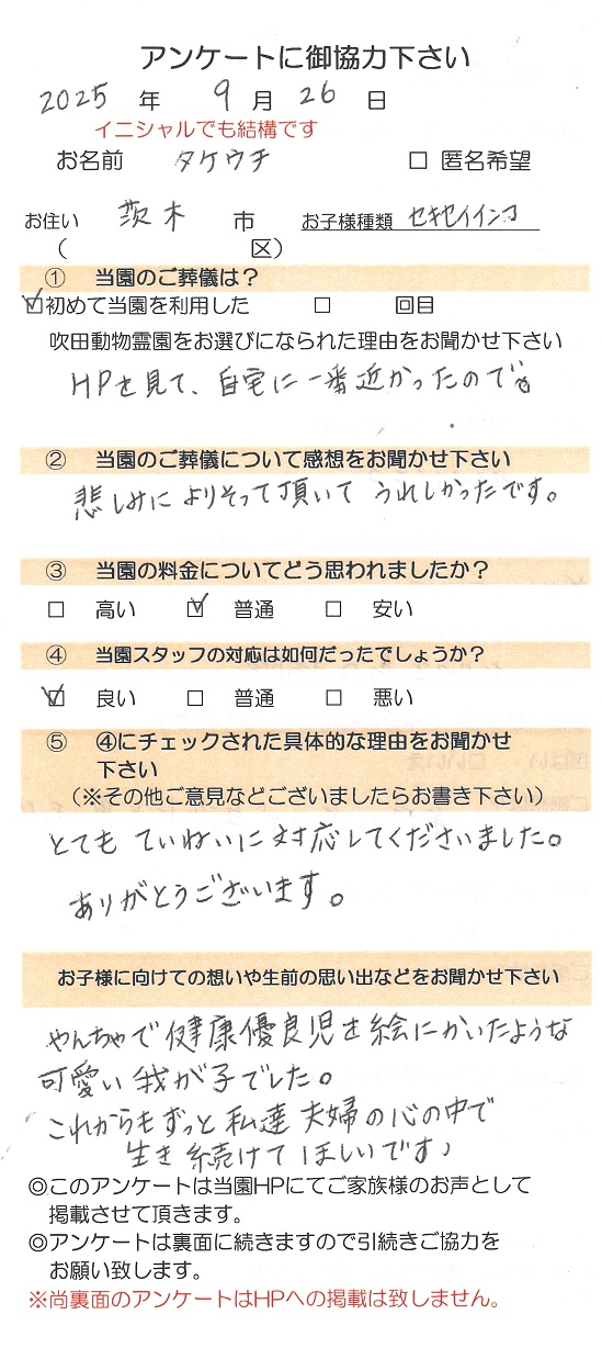 - 【ご葬儀日】2025年9月26日