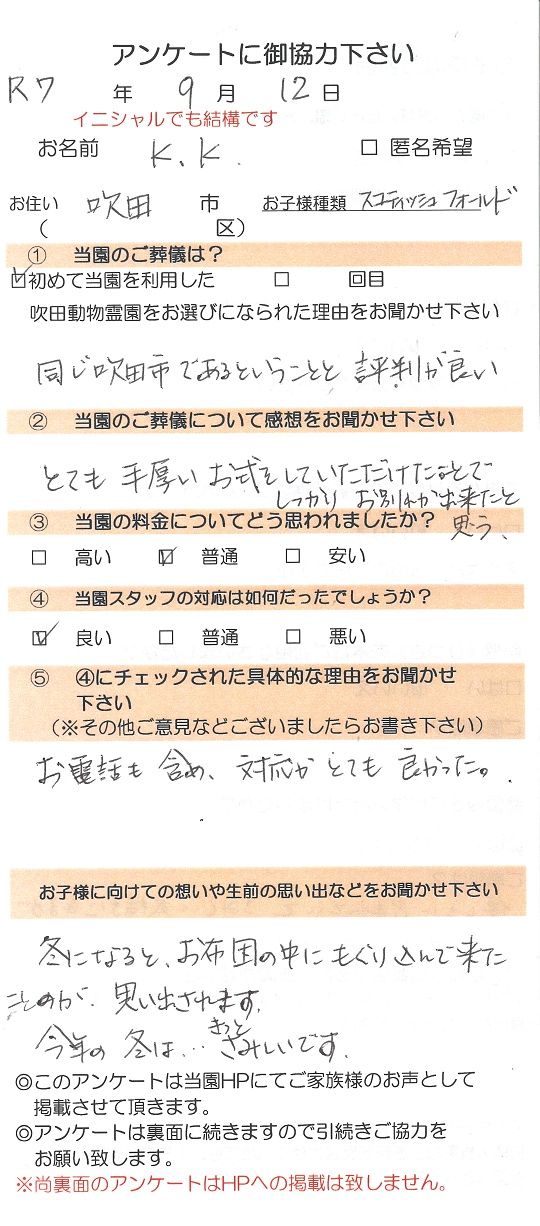 悲しみによりそって頂いてうれしかったです
