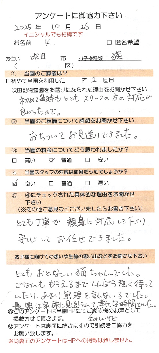 - 【ご葬儀日】2025年10月26日