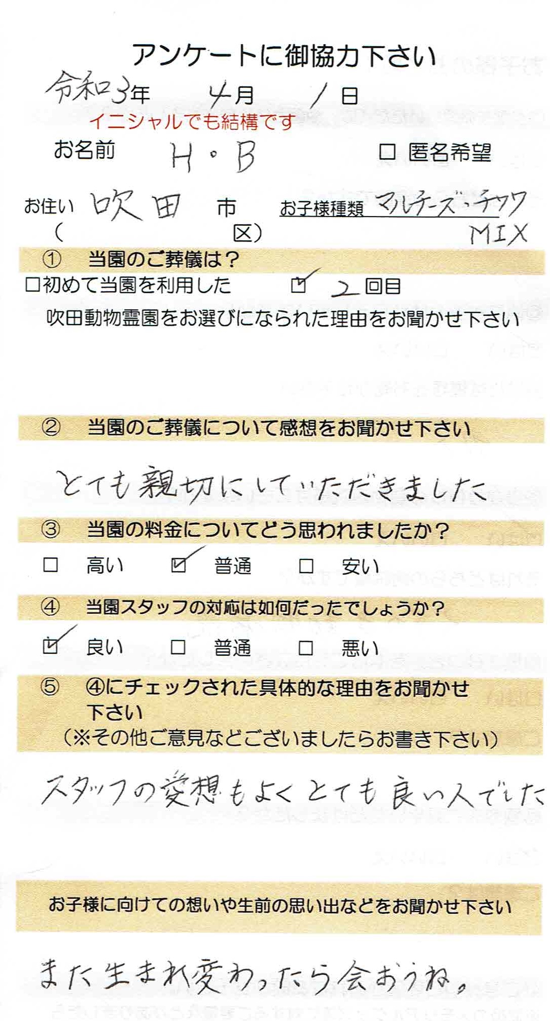 とても丁寧で心ゆくまでお見送りできとても良かったです