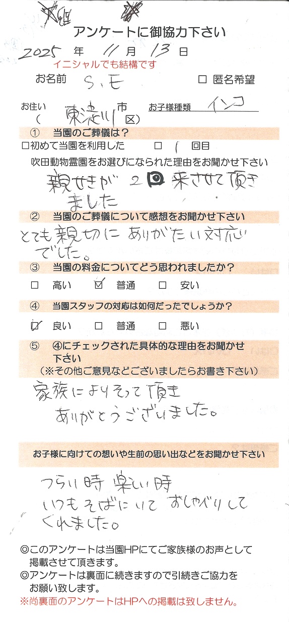 - 【ご葬儀日】2025年11月13日