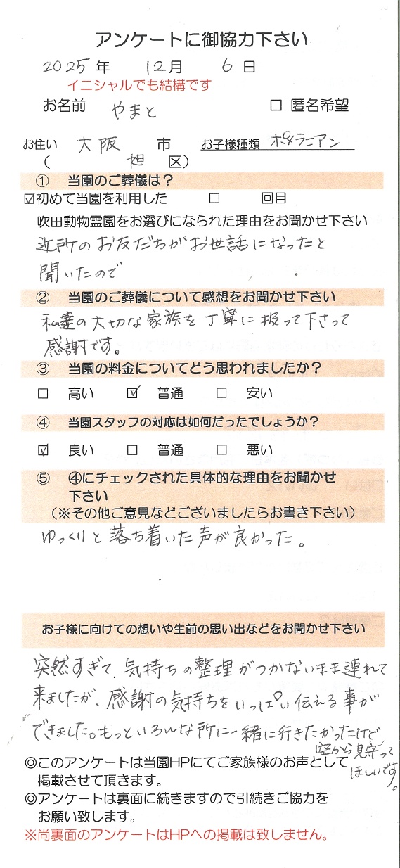 突然すぎて、気持ちの整理がつかないまま連れて来ましたが、感謝の気持ちをいっぱい伝える事ができました。