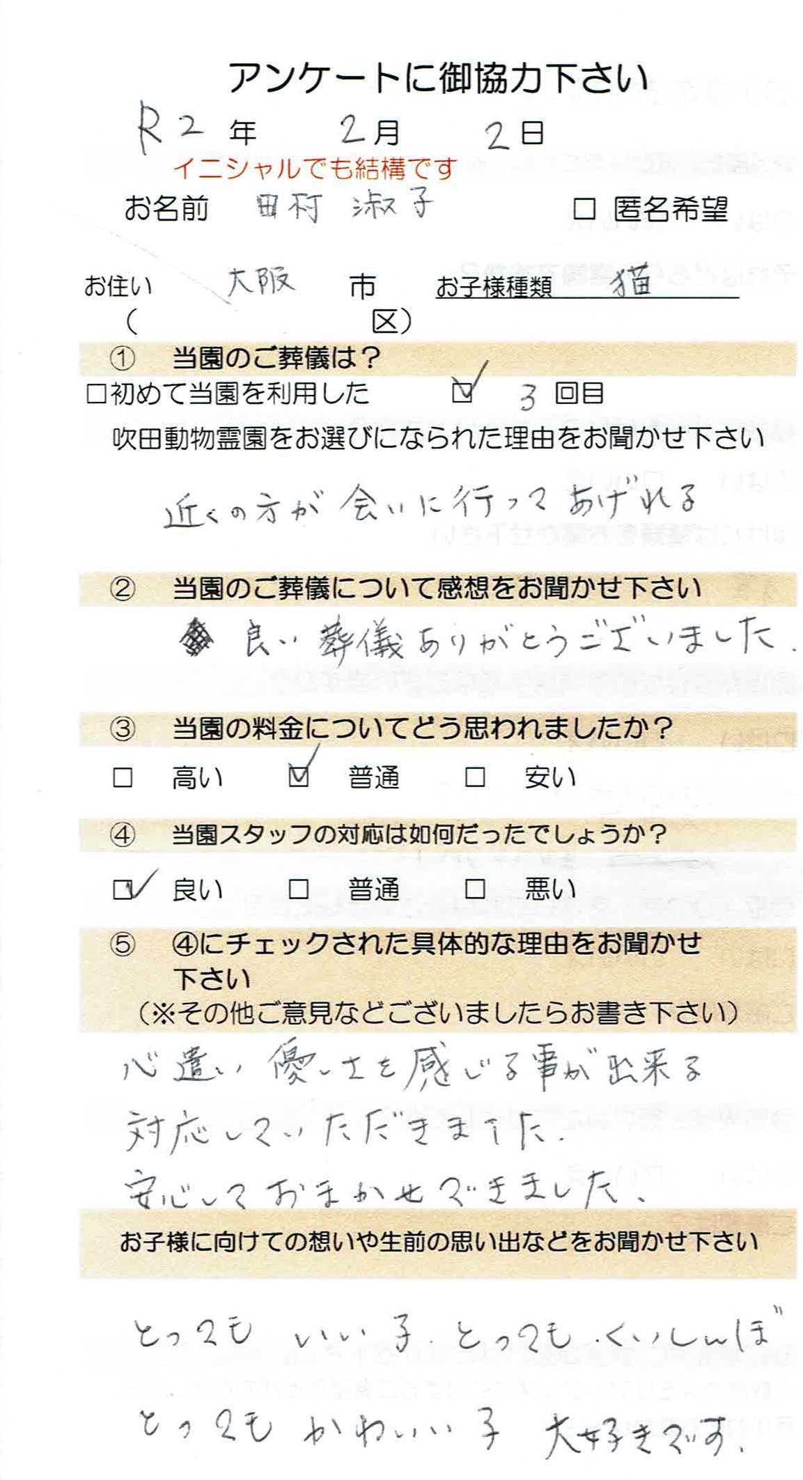 とても丁寧に対応していただき、穏やかな気持ちで見送ることができました。